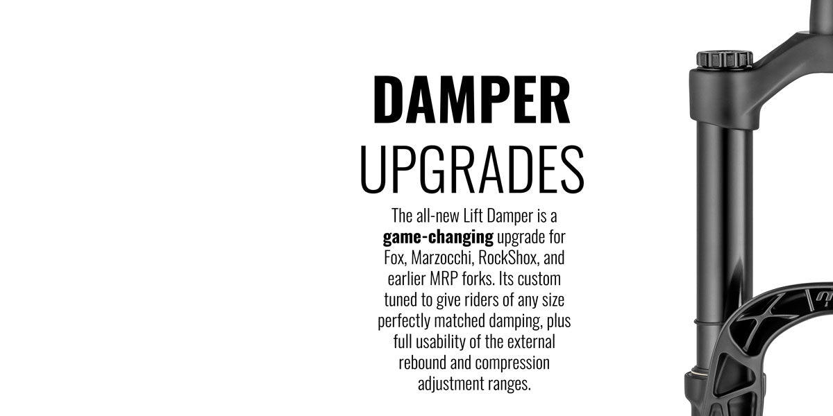 Raise your confidence and your fork’s performance with a Lift Damper upgrade. Available for most 35, 36, and 38mm fork models from Fox and RockShox, Lift Damper cartridges are easy to install and provide an immediate performance upgrade.